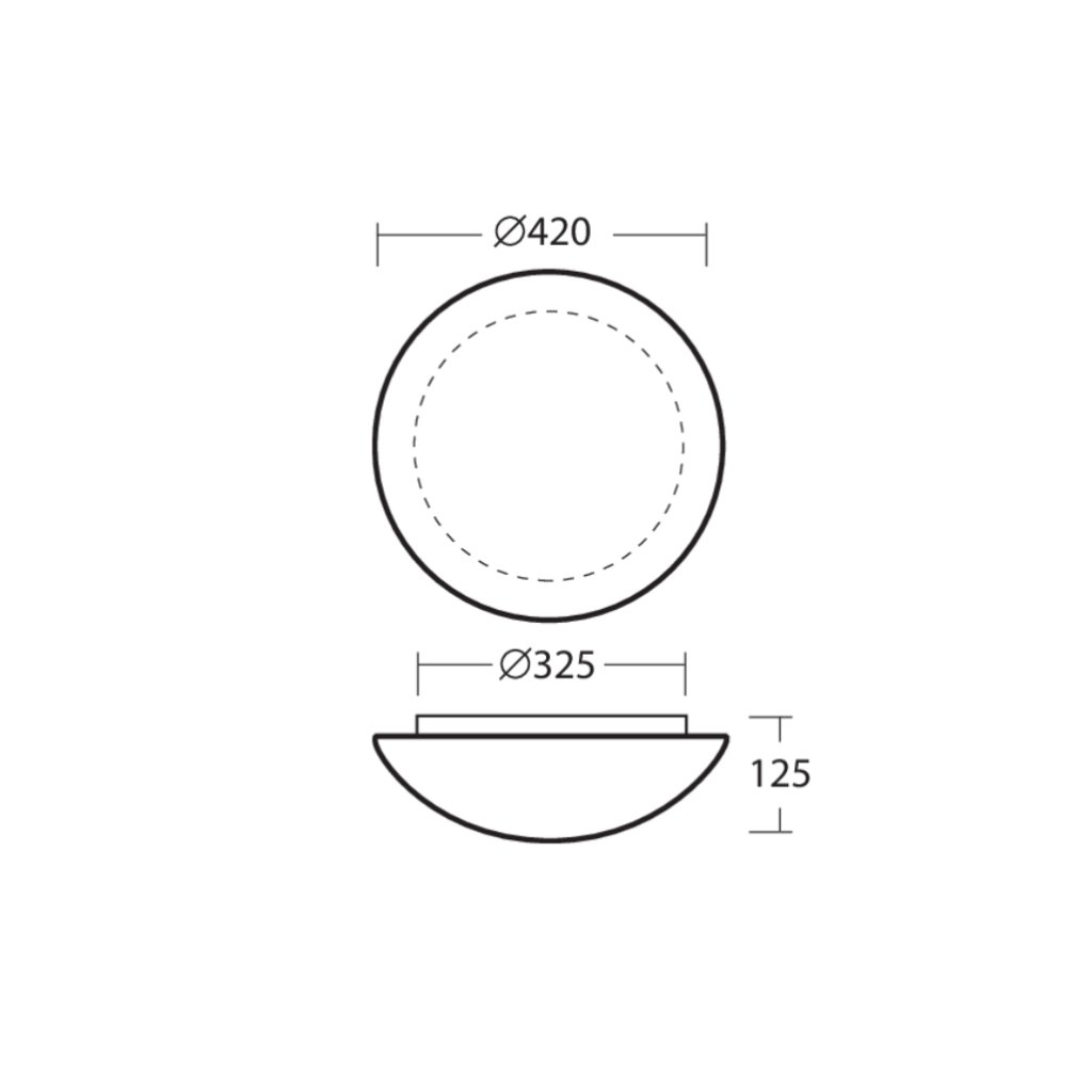 Český výrobek!! Stmívatelné svítidlo Osmont Aura 4 je vhodné do jakéhokoliv interiéru. Vhodné pro montáž na stěnu i na strop. Svítidlo má plechovou základnu, bílé stínítko je vyrobeno z třívrstvého, ručně foukané skla TRIPLEX OPÁL s matovaným povrchem. Průměr svítidla: 42cm, odsazení 12cm.