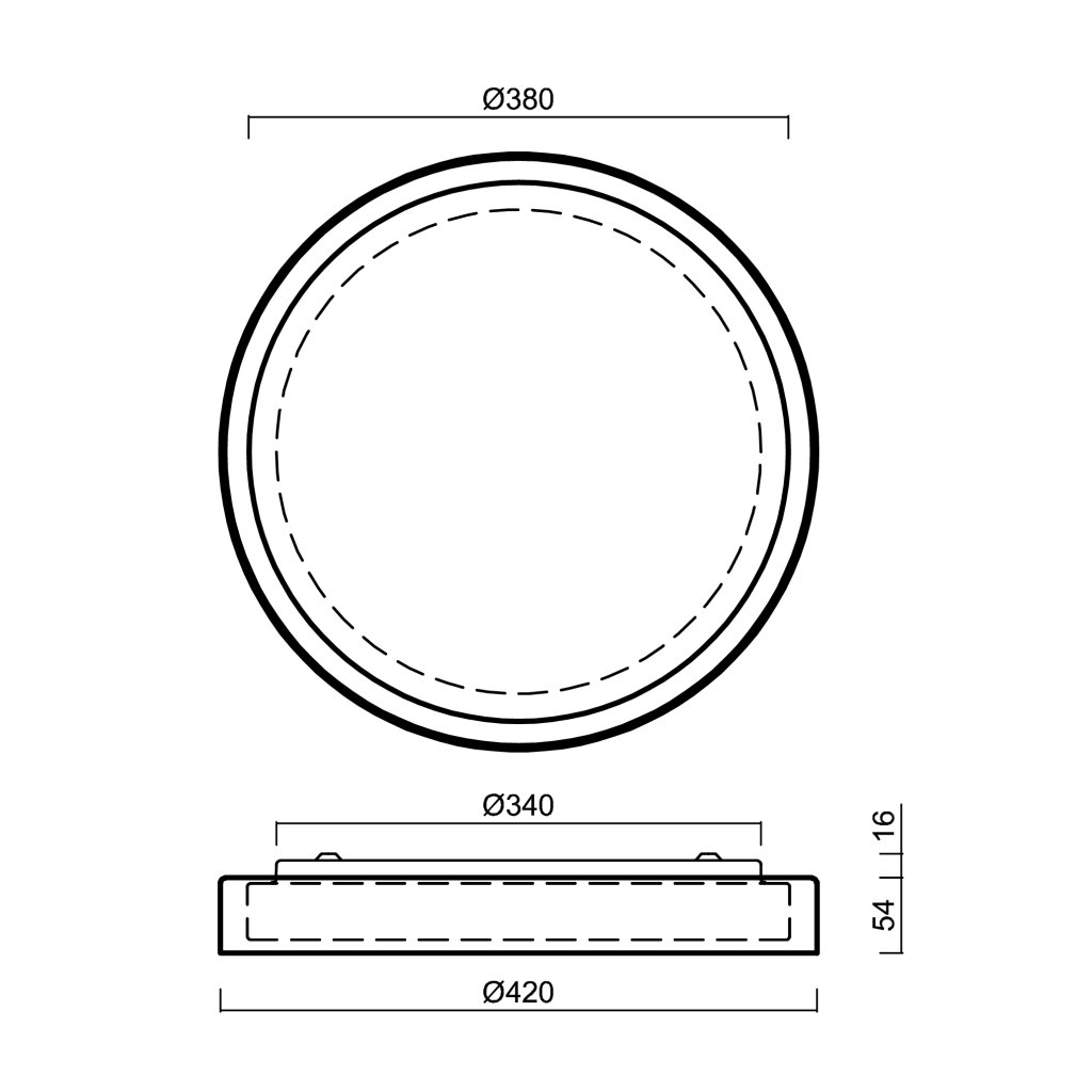 Průměr svítidla 42cm, výška svítidla 5,4 + 1,6cm.