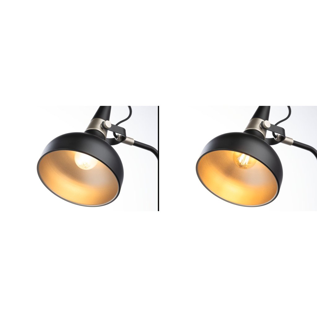 Lampička je vyrobena z kovu v prémiové černé povrchové úpravě s champagne akcenty.