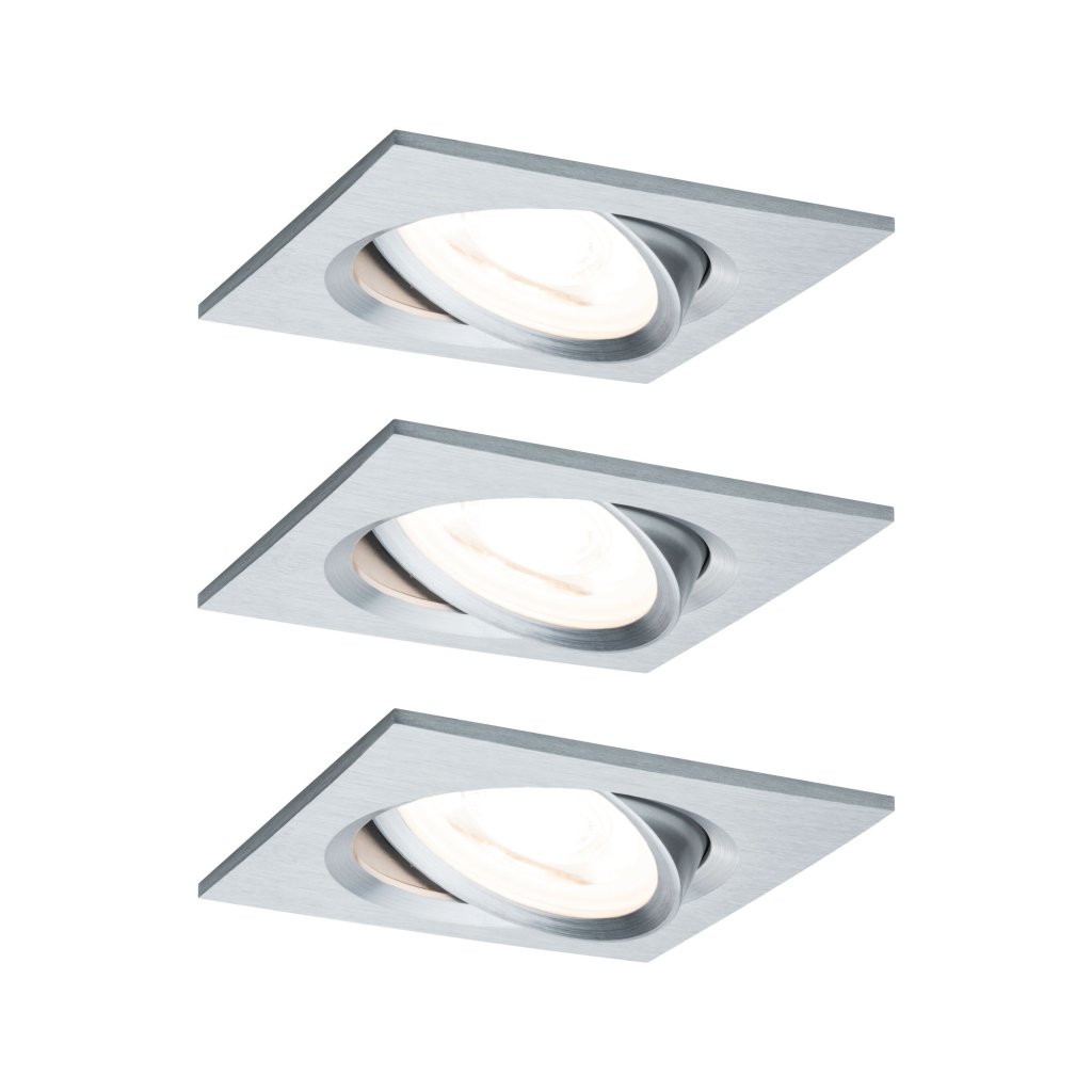 Paulmann LED Coin Nova rectangular, set hranatých bodovek z kartáčovaného hliníku, 3x6,5W LED 2700K tříkrokové stmívání, 8,4x8,4cm