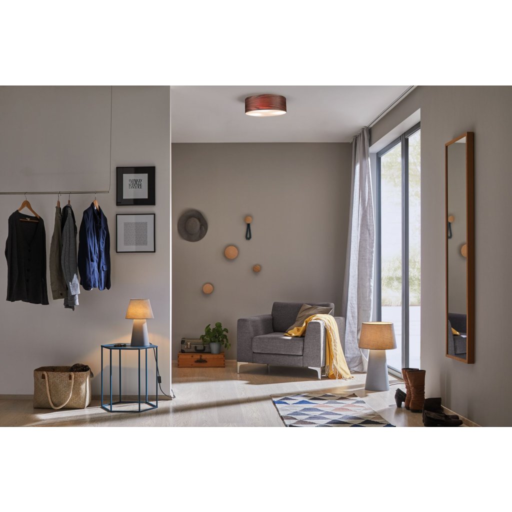 Stropní svítidlo v severském stylu (nordic style) z dřevěné dýhy dubu. Vyrábí německý výrobce Paulmann, série Liska.