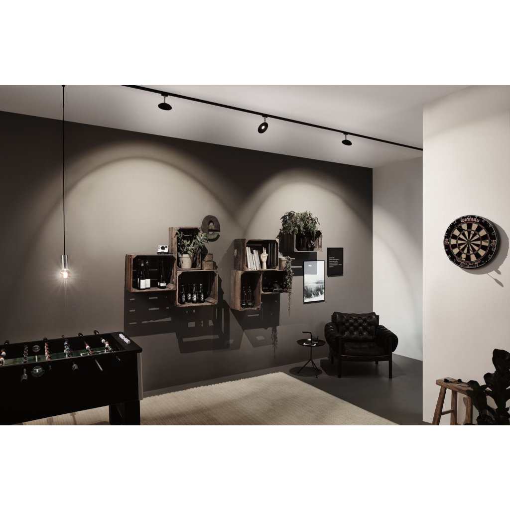 Moderní spot ve tvaru misky s možností stmívání pro použití na kolejnicovém systému Urail od německého výrobce Paulmann, série Sphere.