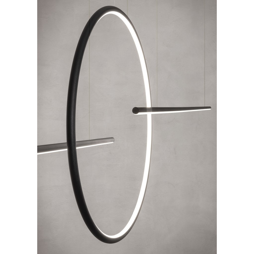 Moderní závěsné svítidlo inspirované geometrií, kdy dvě úsečky protínají kružnici. Vyrábí rumunský výrobce Redo Group, série Giotto.