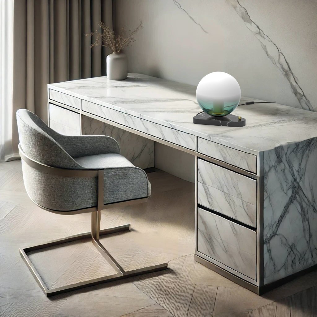 Každé svítidlo je vybaveno mosaznou monturou a leštěnou, ručně foukanou skleněnou koulí s unikátním dvoubarevným gradientním povrchem, který přechází z mléčně bílé spodní části do zvolené povrchové úpravy. Díky ruční výrobě je každý kus originálem – drobné odchylky jsou přirozeným znakem ručního řemeslného zpracování. Kolekce zahrnuje také stolní, stojací a nástěnné varianty.