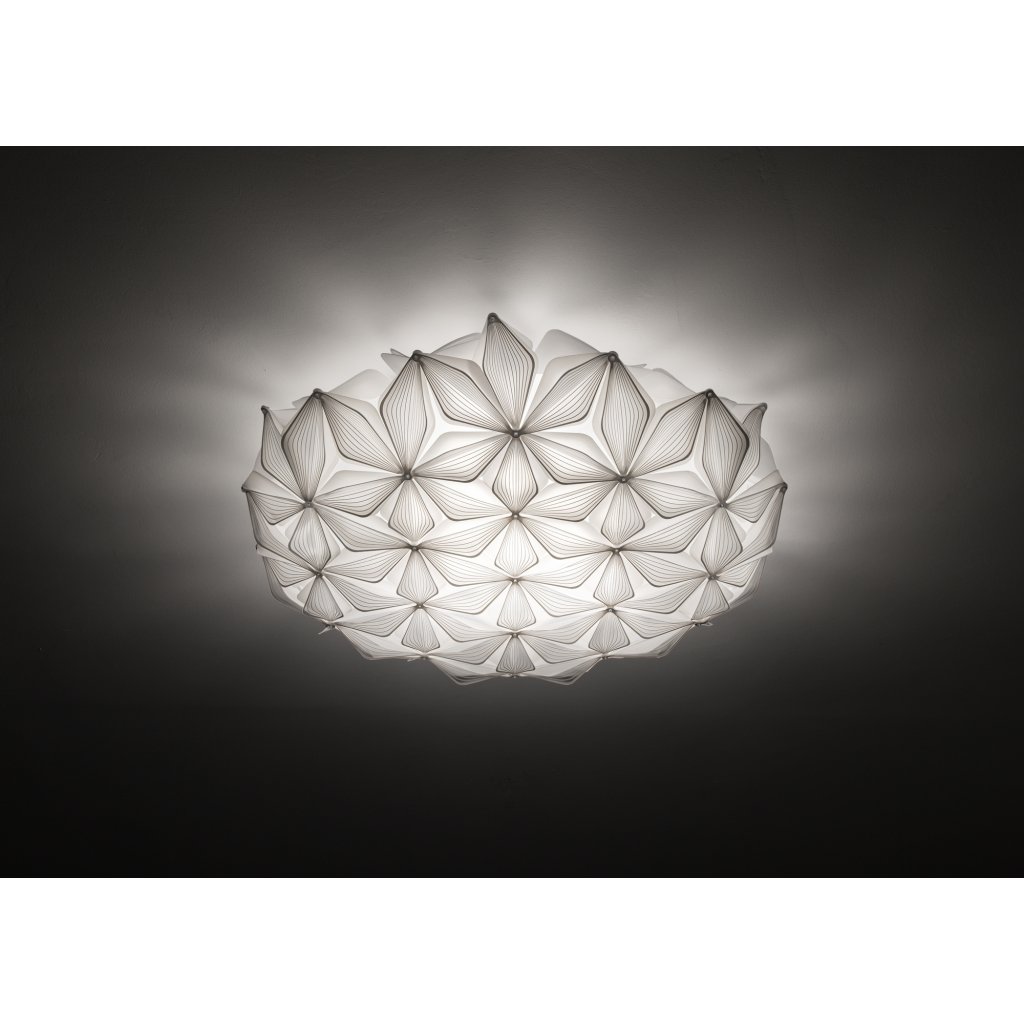 Osvětlení je vyrobeno z opalfexu a lentiflexu s jemným potiskem, což je speciální plastový materiál patentovaný firmou Slamp. Opalflex pracuje se světlem, čímž vytváří jedinečnou atmosféru. Materiály jsou nerozbitné, lehce se čistí a jsou lehký. Tento materiál dává designerům možnost vytvářet tvary, které by z jiných materiálů nebylo možné vytvořit. Díky tomu je svítidlo na svůj rozměr velice lehké a při montáži není potřeba speciální úpravy stropu. Navíc má nízkou hmotnost, takže je možné použít magnety pro přichycení stínítka k montuře. To oceníte hlavně při servisu nebo při úklidu, kdy nebudete potřebovat žádné nářadí.