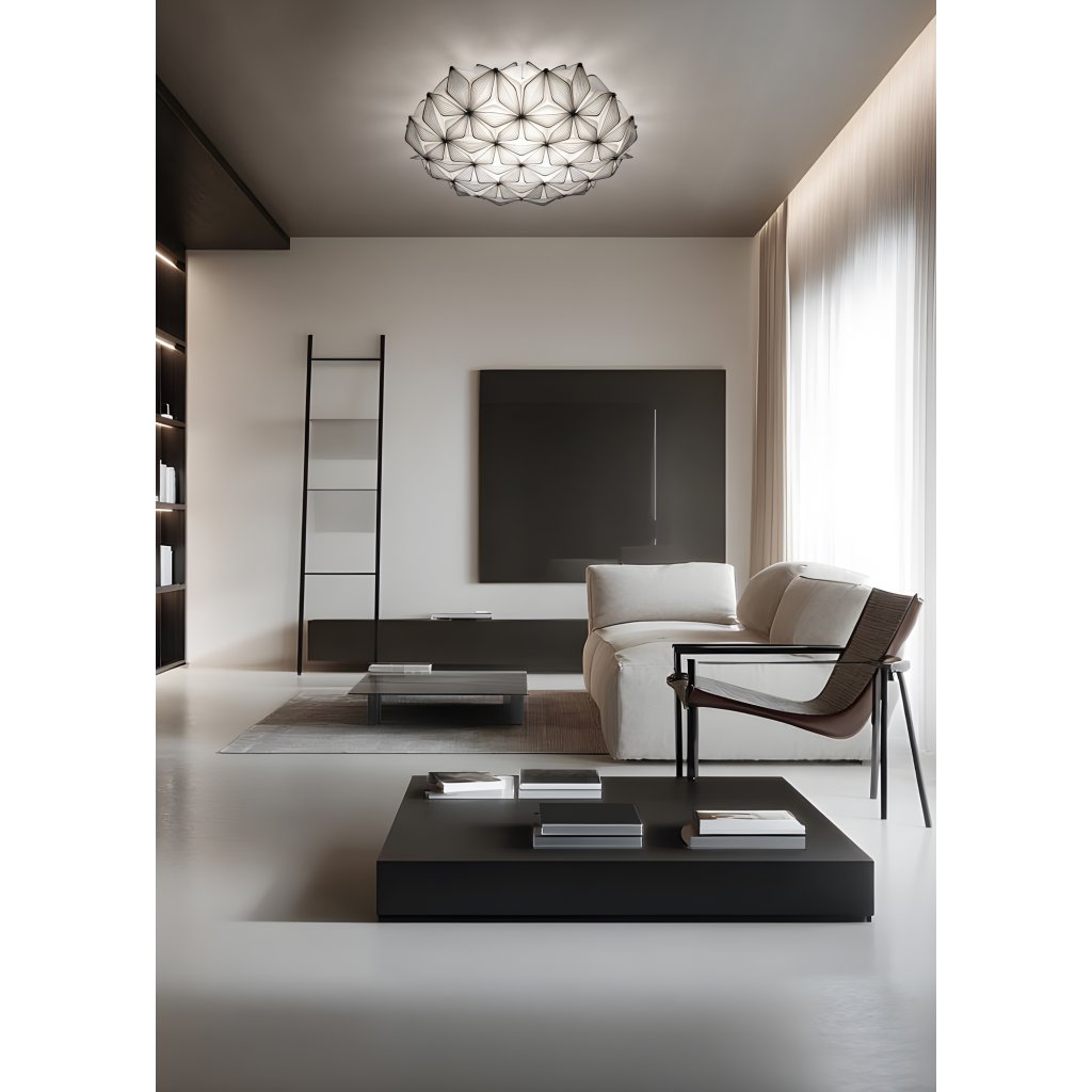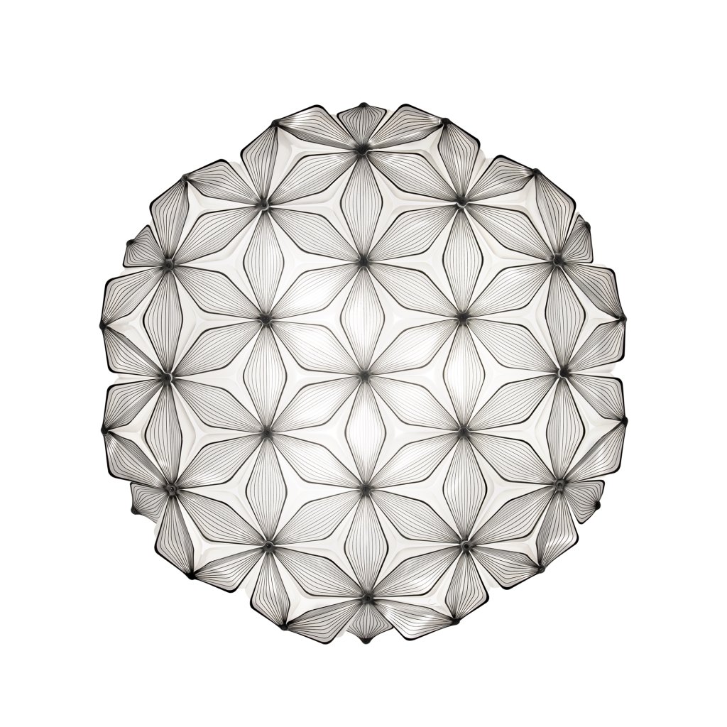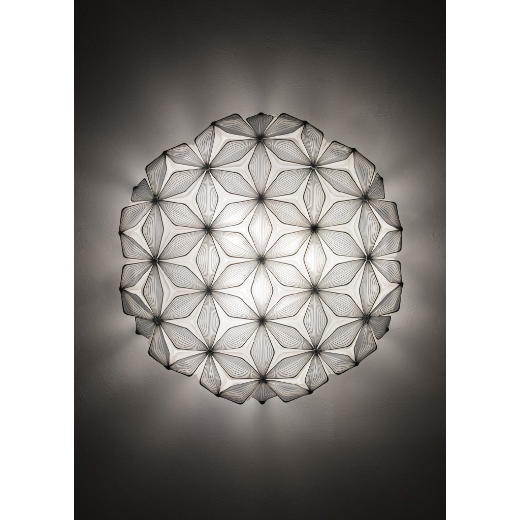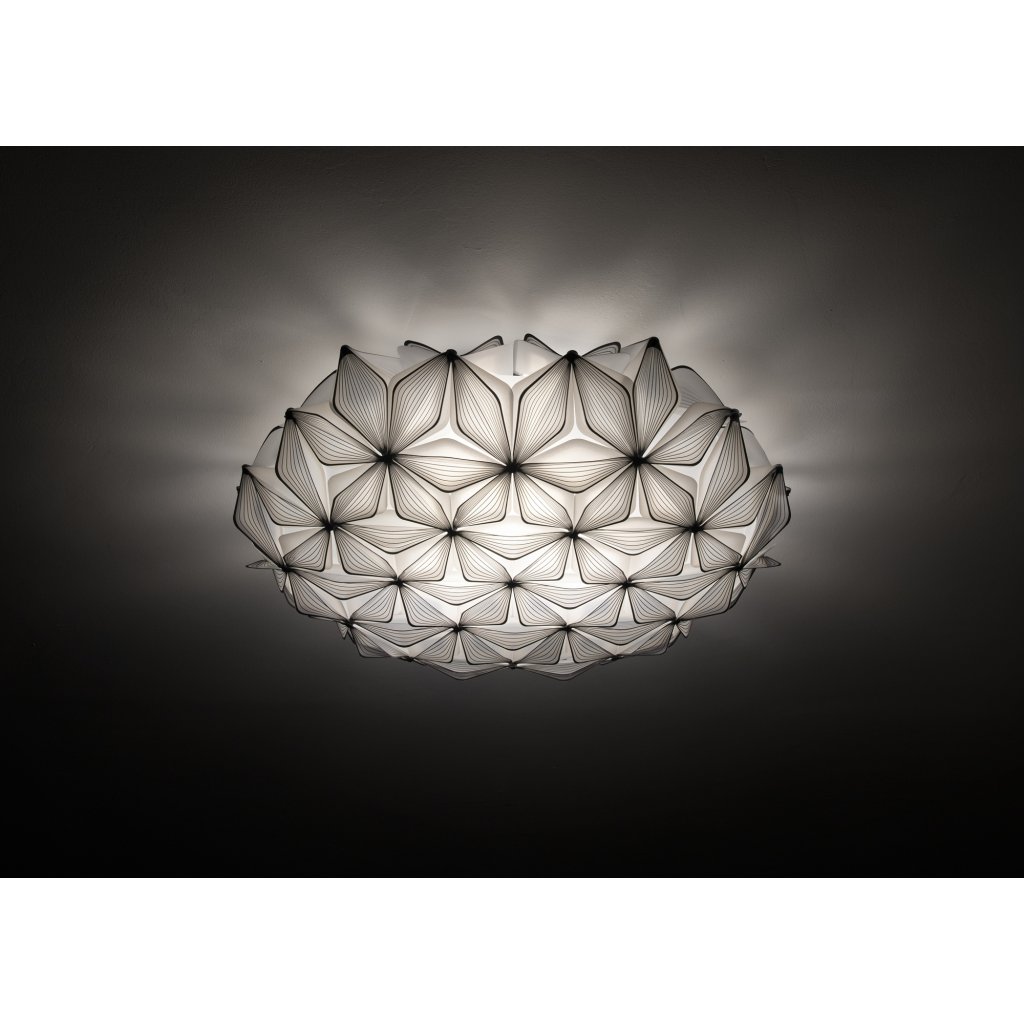 Osvětlení je vyrobeno z opalfexu a lentiflexu s jemným potiskem, což je speciální plastový materiál patentovaný firmou Slamp. Opalflex pracuje se světlem, čímž vytváří jedinečnou atmosféru. Materiály jsou nerozbitné, lehce se čistí a jsou lehký. Tento materiál dává designerům možnost vytvářet tvary, které by z jiných materiálů nebylo možné vytvořit. Díky tomu je svítidlo na svůj rozměr velice lehké a při montáži není potřeba speciální úpravy stropu. Navíc má nízkou hmotnost, takže je možné použít magnety pro přichycení stínítka k montuře. To oceníte hlavně při servisu nebo při úklidu, kdy nebudete potřebovat žádné nářadí.