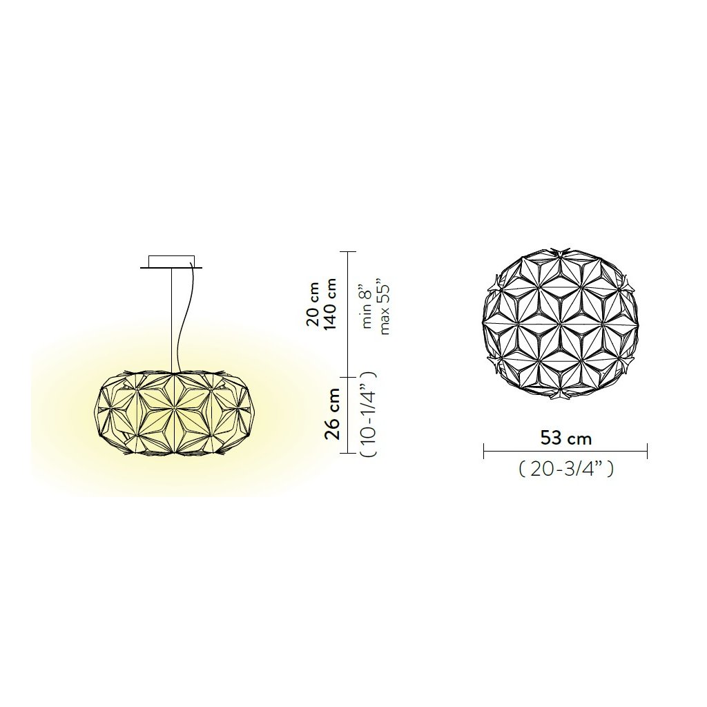 Osvětlení je vyrobeno z opalfexu a lentiflexu s jemným potiskem, což je speciální plastový materiál patentovaný firmou Slamp. Opalflex pracuje se světlem, čímž vytváří jedinečnou atmosféru. Materiály jsou nerozbitné, lehce se čistí a jsou lehký. Tento materiál dává designerům možnost vytvářet tvary, které by z jiných materiálů nebylo možné vytvořit. Díky tomu je svítidlo na svůj rozměr velice lehké a při montáži není potřeba speciální úpravy stropu.