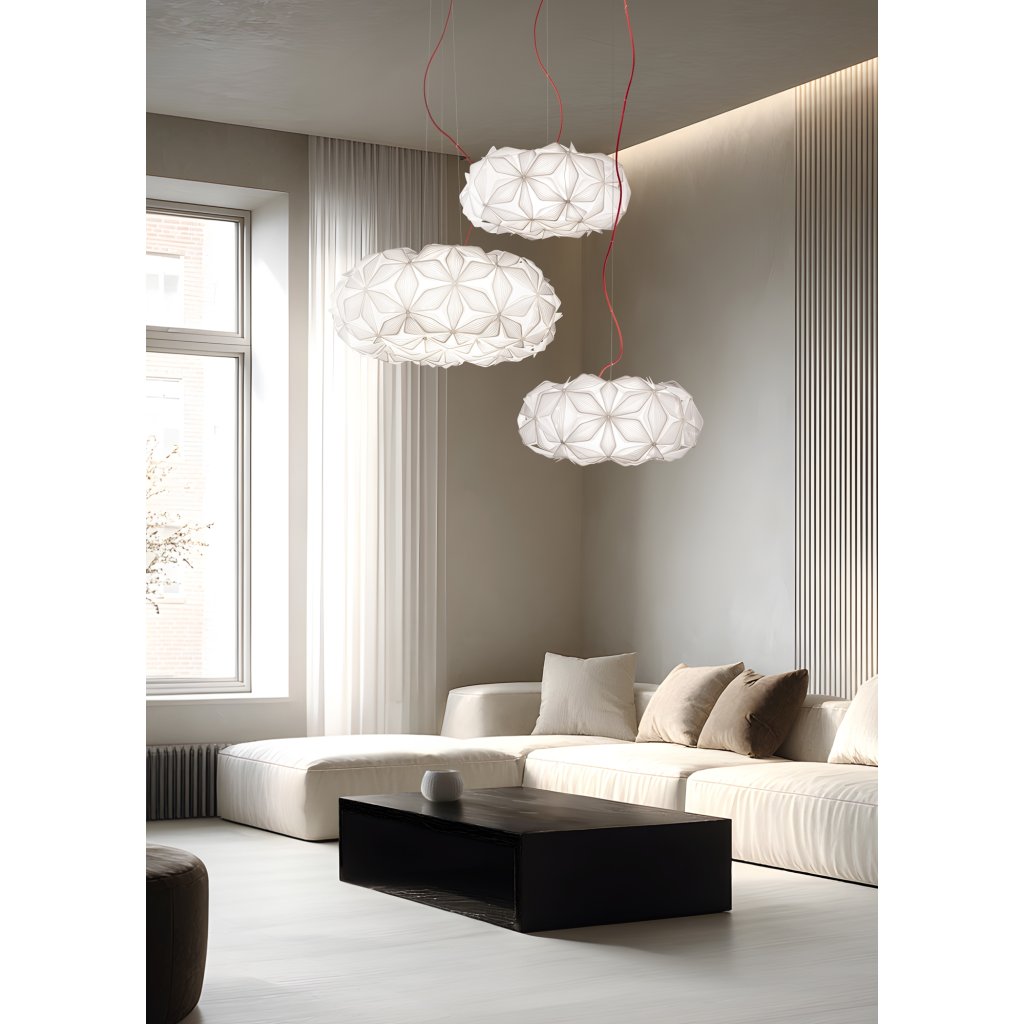 Slamp C’est La Vie Medium, závěsné bílé designové svítidlo s červeným kabelem, 2x12W E27, prům. 53cm
