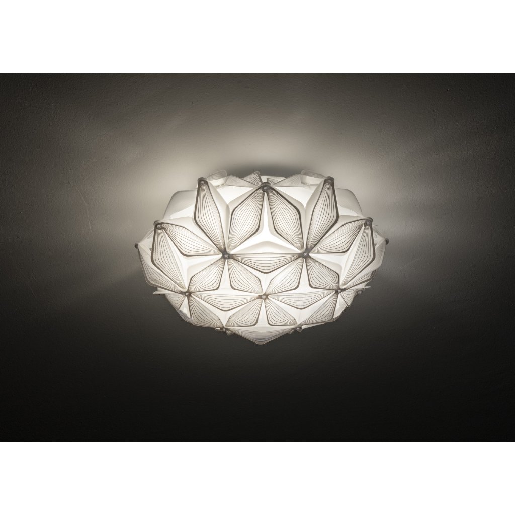 Osvětlení je vyrobeno z opalfexu a lentiflexu s jemným potiskem, což je speciální plastový materiál patentovaný firmou Slamp. Opalflex pracuje se světlem, čímž vytváří jedinečnou atmosféru. Materiály jsou nerozbitné, lehce se čistí a jsou lehký. Tento materiál dává designerům možnost vytvářet tvary, které by z jiných materiálů nebylo možné vytvořit. Díky tomu je svítidlo na svůj rozměr velice lehké a při montáži není potřeba speciální úpravy stropu. Navíc má nízkou hmotnost, takže je možné použít magnety pro přichycení stínítka k montuře. To oceníte hlavně při servisu nebo při úklidu, kdy nebudete potřebovat žádné nářadí.