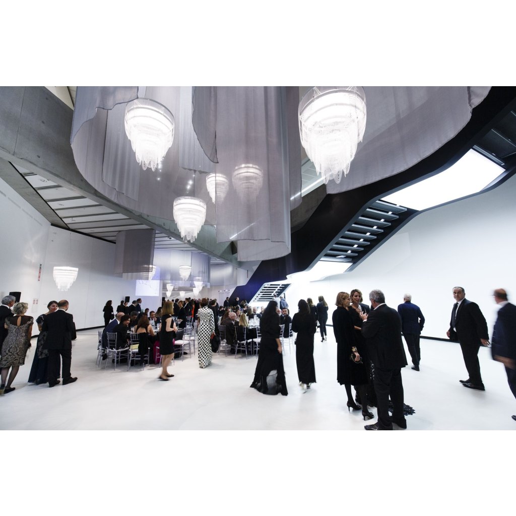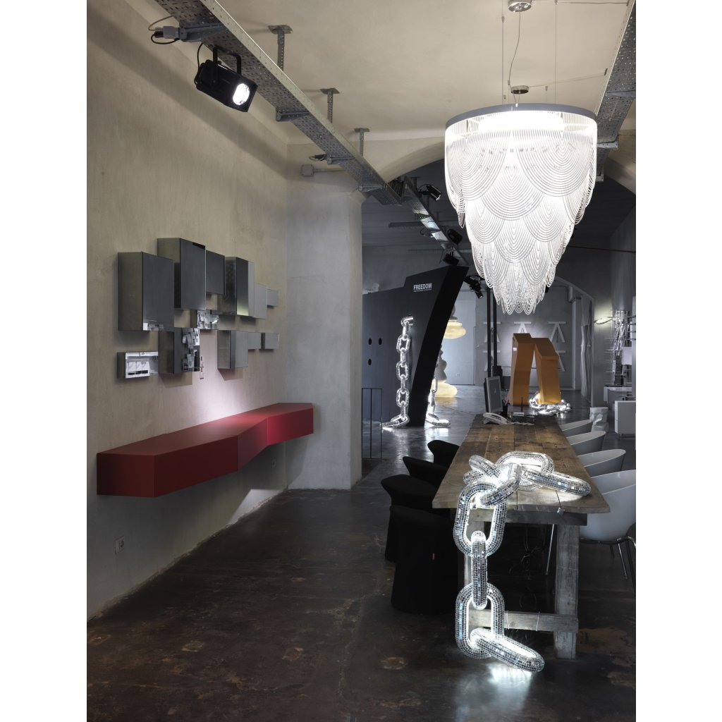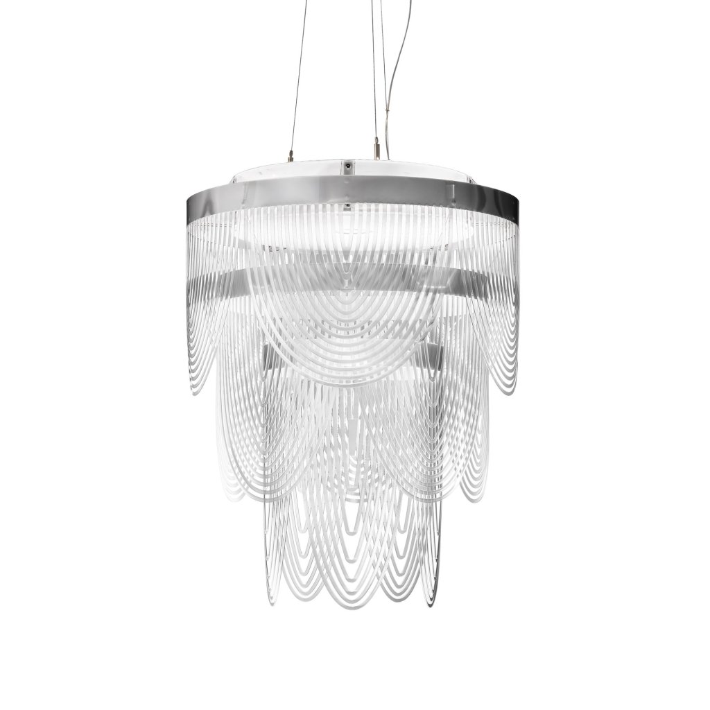 Slamp Ceremony: opulentní závěsný lustr pro slavnostní osvětlení s ženskou enerigií. Vyrábí italský výrobce Slamp, autor designu Bruno Rainaldi.