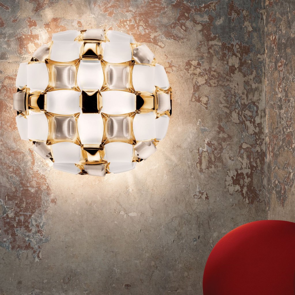 Slamp Mida white-gold: extravagantní svítidlo inspirované drahokamy ze světa vysoké módy Haute couture. Vyrábí italský výrobce Slamp, design Adriano Rachele.
