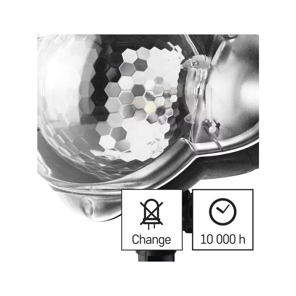 Umístění projektoru na zahradě či v interiéru je díky přívodnímu kabelu o délce 3m dílem okamžiku. Součástí balení je i praktický stojánek pro postavení projektoru na tvrdý podklad. Další možností instalace je využití dodávaného trnu, který lze jednoduše zapíchnout do trávníku nebo květináče.
