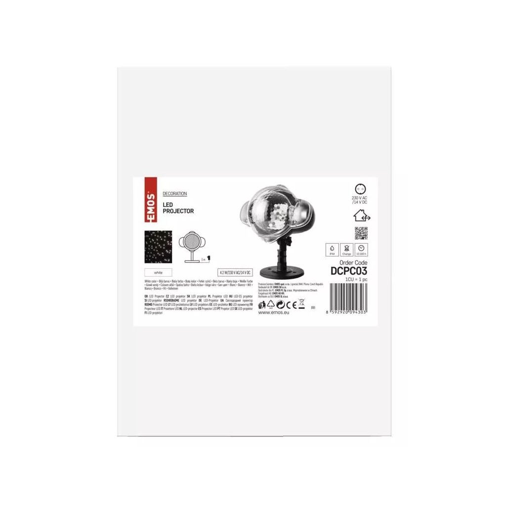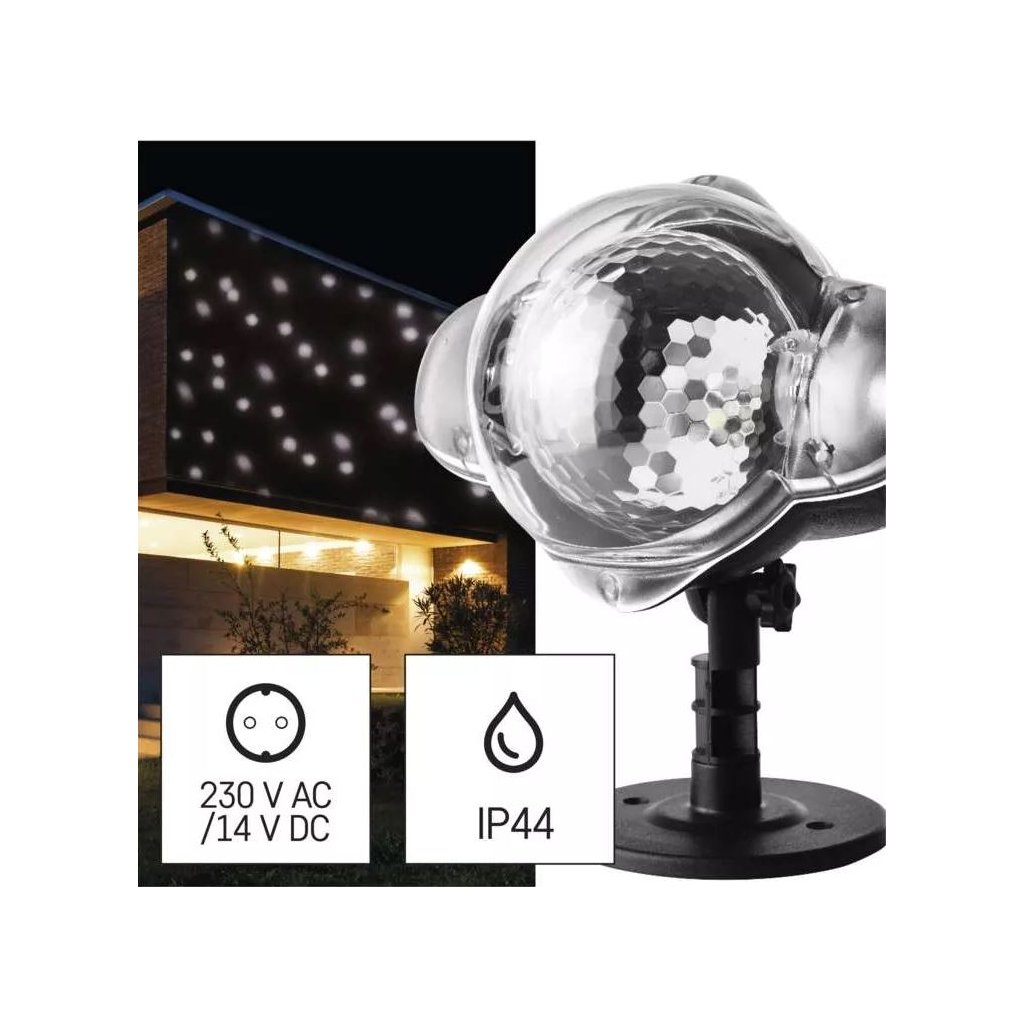 Vánoční LED dekorativní projektor – padající vločky, venkovní i vnitřní, bílá