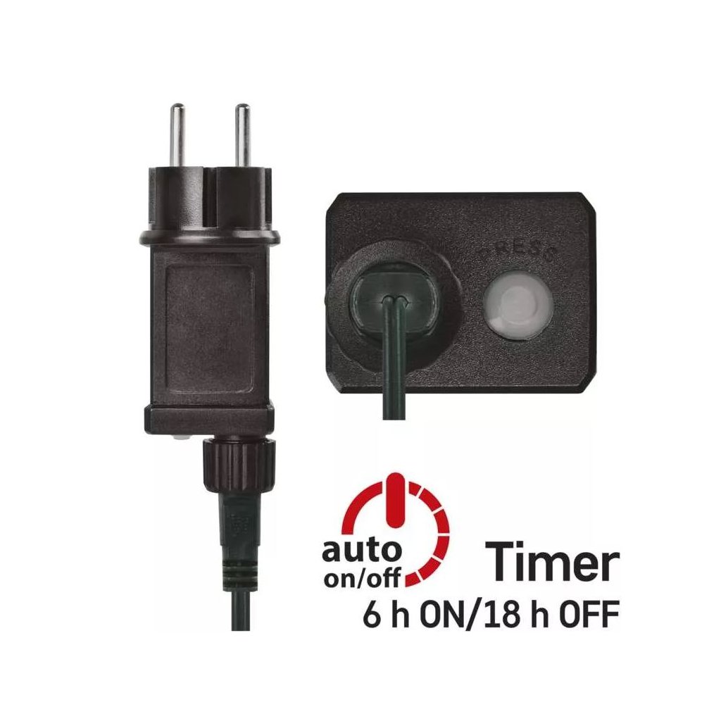 Jistě oceníte i funkci časovače, který stromek opakovaně každý den rozsvítí ve vámi určený čas po dobu 6 hodin a následně jej na 18 hodin vypne. Přes den tak šetříte energii a svítíte pouze večer nebo v noci, kdy je to žádoucí.