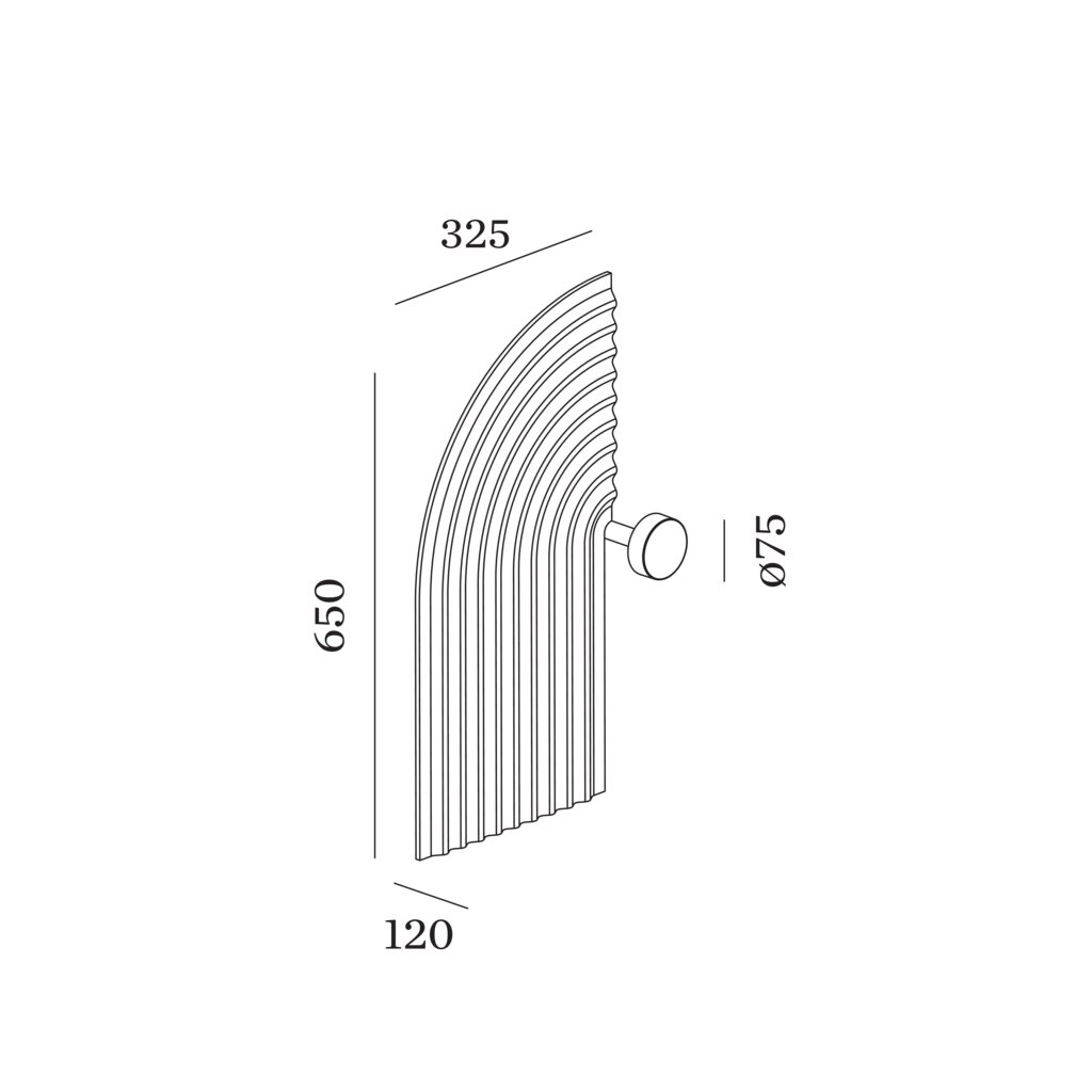Výška 65cm, šířka 32,5cm, hloubka 12cm, průměr středového prvku se světelným zdrojem je 7,5cm.